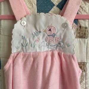 Perfect vintage condition! Pink 6 month baby overalls. Easy to put on, 2 buttons over the shoulders. Cutest duck embroidery!