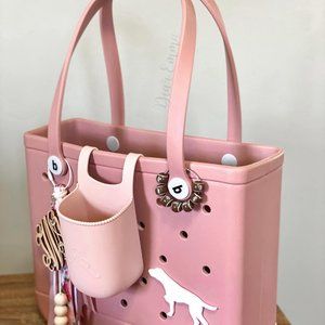 Pink Cow Print Beaded Sports Bogg Bag Charm Keychain