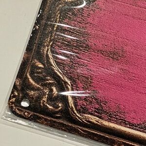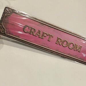 Decorative pink & brown "Craft Room" metal wall sign. Adds a charming touch to any home office or craft space. Easy to hang & features a vintage-inspired brown on pink finish. Enhances decor with clear, bold lettering. In new condition & in its original cellophane / cardboard packaging. NWT
