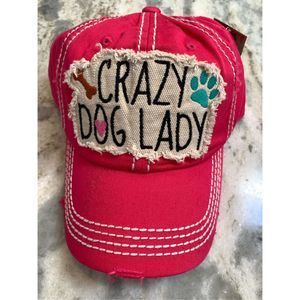 Dark Pink Baseball Cap with Crazy Dog Lady monogrammed and Velcro Adjustable 3” Back. #dog #beach #love