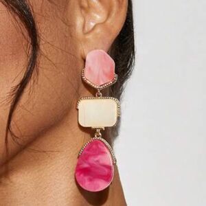 Add a touch of elegance to your outfit with these stunning pink and cream dangle earrings. Perfect for any occasion.