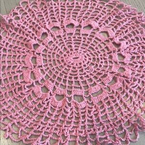 Enhance your home decor with this charming pink crochet doily set. Perfect for adding a touch of elegance to any room.