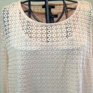 Lovely pink crochet lace Alfani top with tank. Size Medium. This is a lovely set! Never worn. Still has tags. 3/4 sleeve length. Price firm. Thanks for shopping!