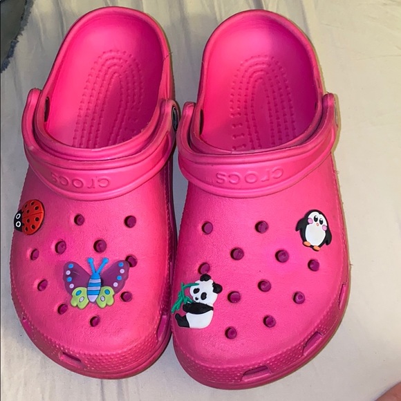 Bright pink crocs, size 5 in men/ size 7 in women ๐ croc charms come included as a little gift ๐