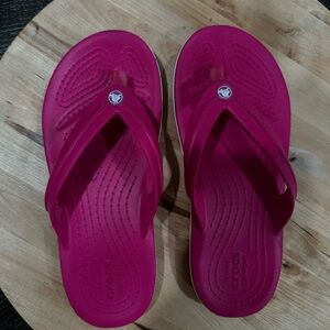 Woman’s pink crocs sandals size 5 aka pink crocs junior size 3 worn once