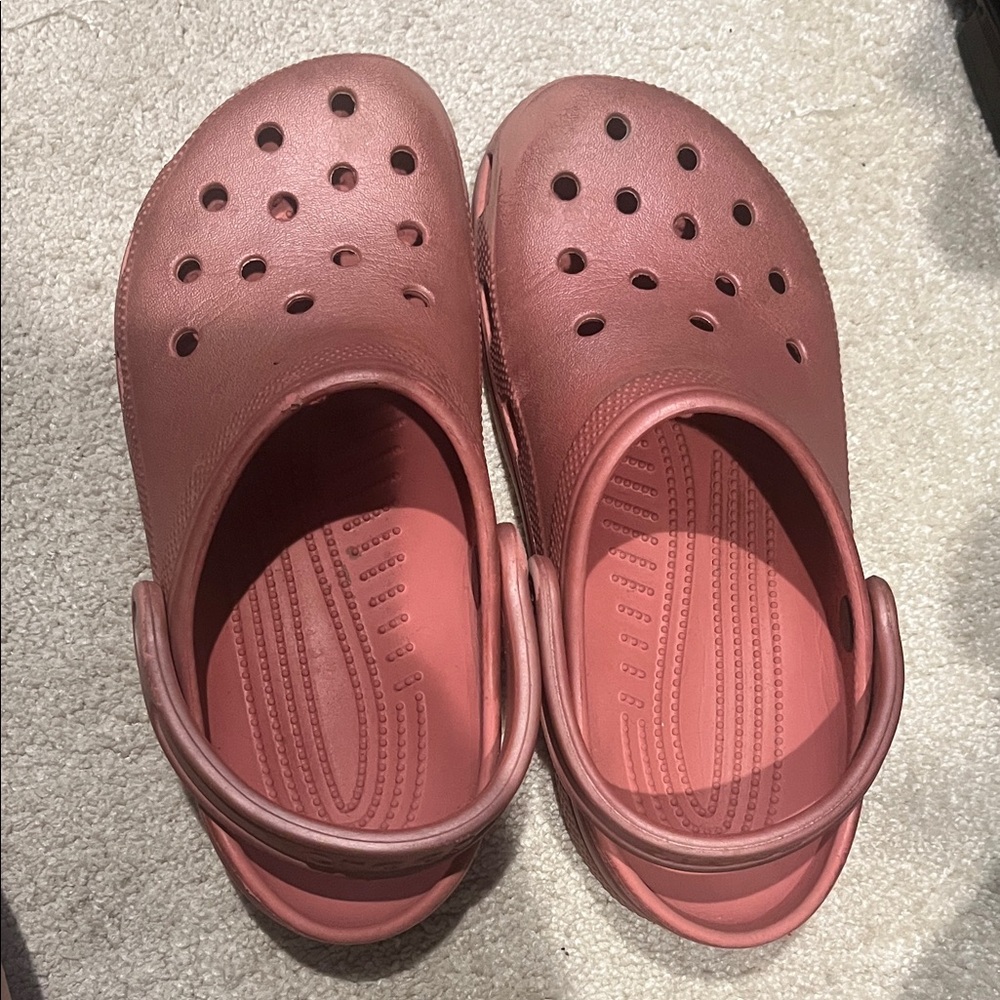 Comfortable and stylish Crocs in a vibrant pink color. Perfect for everyday wear. Women’s 5, Men’s 7.