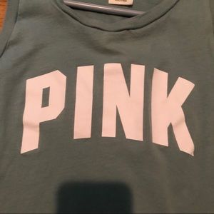 cropped blue tanktop from VS Pink. it’s higher in the front because it originally came with a knot tied in the front. it since then has come out but can still be tied! soft and comfy fabric! size medium - fits true to size but shorter since it’s cropped