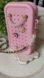 Pink silicone phone holder crossbody bag with added black faux letter chain strap