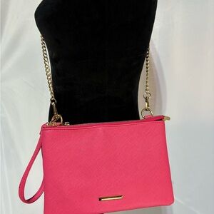 Pink Crossgrain Double Top Zip Convertible Clutch Crossbody Bag
