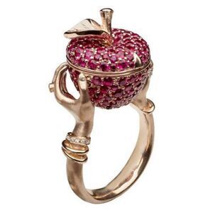 Pink Crystal Apple Poison Ring Womens Secret Compartment Statement Jewelry