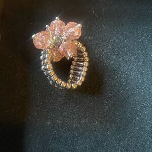 Fun and elegant ring with pink crystal cluster. Stretch band for adjustable fit. Comfortable at 7 to 7 1/2