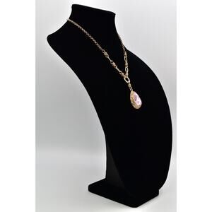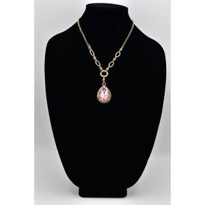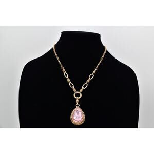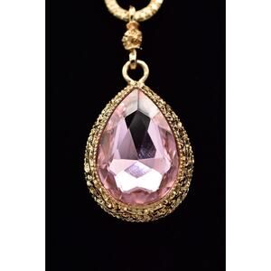Pink Crystal Drop Statement Necklace Teardrop Shiny Chunky Gold Tone NOS Y2K