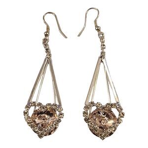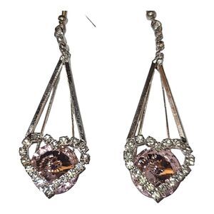 Pink Crystal Heart Drop Earrings Silver Tone Rhinestones 2.5". Shipped with USPS Ground Advantage.