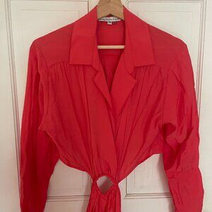 This is a silky collared side cut out dress.