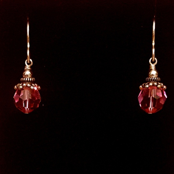 Pink Bead Earrings with Silver Housing.