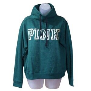 Pink Dark Green Metallic Silver Spellout Chest Logo Cowl Neck Pullover XS