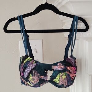Super cute tropical lace overlay print bra with Multi-way function, pushup padding, and a plunge front.