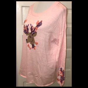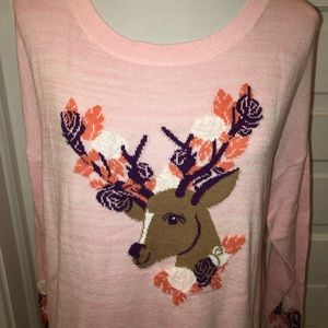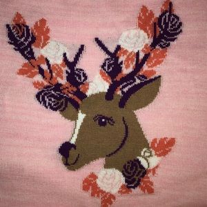 Stay cozy and stylish with this pink sweater featuring a charming deer pattern. Perfect for casual outings.