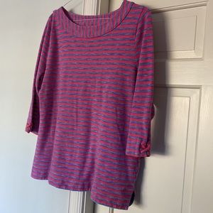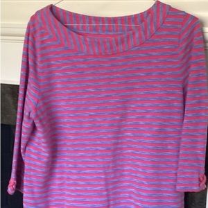 Round boat collar 3/4 sleeves with pink X finish detail.