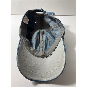 Stylish denim cap with colorful rhinestone embellishments. Features bold lettering and sparkling details.