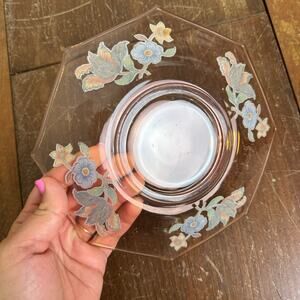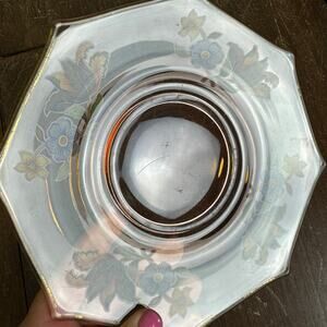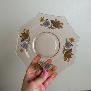 Pink Depression Applied Flocked Style Floral Design Octagon Plate