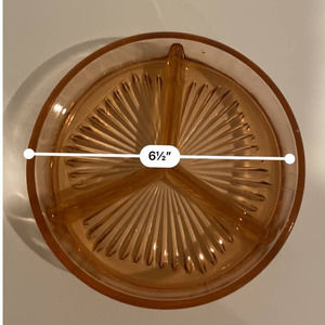 Pink Depression Glass Condiment Dish Three Compartments. This is pink depression glass. It has three compartments and is textured on the bottom.