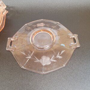 Pink Depression Lancaster Glass Saucer Plate 7'' Open Handle Set 5 1930s Vintage