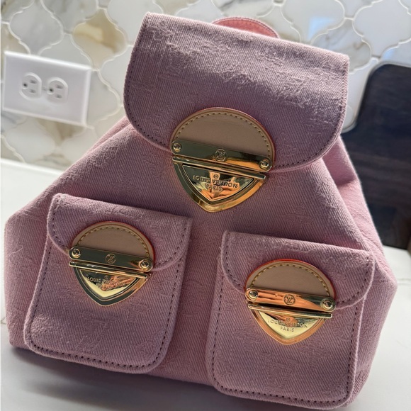 Chic and stylish pink backpack with gold accents. Perfect for everyday use.