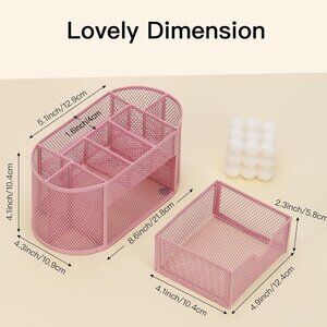 Package Contains: This package contains an 8.6" x 4.3" x 4.1" mesh desk organizer, with 8 compartments and 1 drawer. The size is exquisite and enough to store your stationery and office supplies.