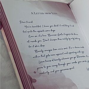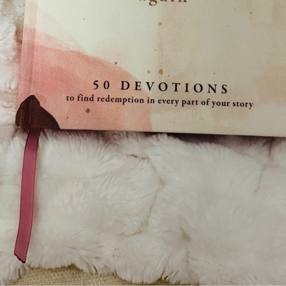 Charming pink devotional book designed for daily reflection. Includes a built-in pink ribbon bookmark for easy page marking. Soft pink cover and subtle watercolor details create a calming look. Perfect for bedside devotion or carrying in a bag.