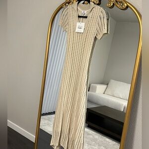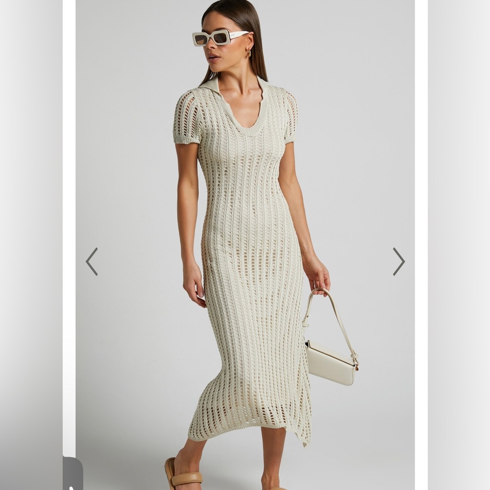 JOLIE MIDI DRESS - CROCHET COLLARED SHORT SLEEVE DRESS IN CREAM