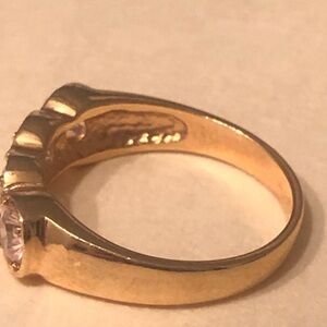 “This is a 1970 to 1980s gold plated ladies rhinestone cluster cocktail ring valued at $25 to $35 resale.Marked DAC, a maker of costume jewelry.”