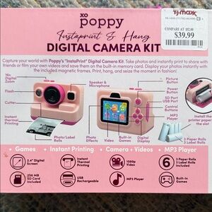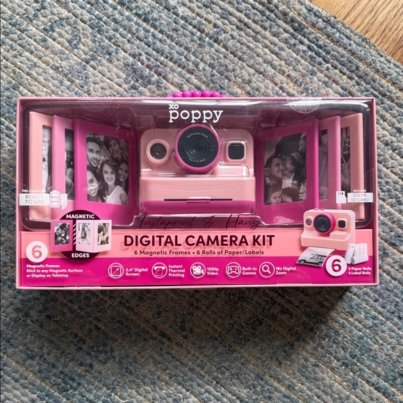 Capture memories with the Pink Digital Camera Kit. Includes 6 magnetic frames and 6 rolls of paper/labels for instant photo fun.
