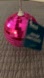 Disco ball ornament with pink mirror tiles and a sparkly silver hang string.