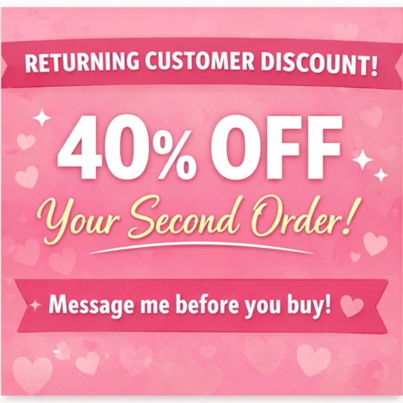 Pink sign offering 40% off on second order. Perfect for returning customers.MESSAGE ME BEFORE YOU ORDER!!!!!!!!!!!!!!!!!!!!!!!!!!!