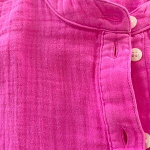 Short double gauze dress in hot pink from the gap. Fabric is a soft gauzy cotton.  Light and comfortable for hot weather.  Summer collection, 2025.