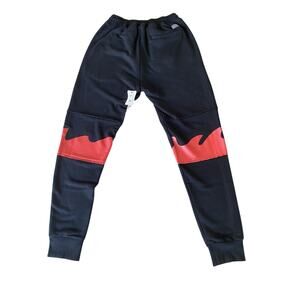 Pink Dolphin Black Jogger Red Flame Pants L Mens With A Baseball Hat Red/Black