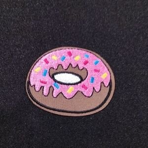Add a fun touch to your child's accessories with this pink donut embroidered patch. Perfect for backpacks, jackets, and more.