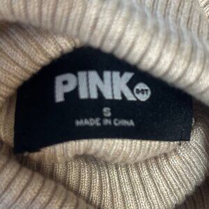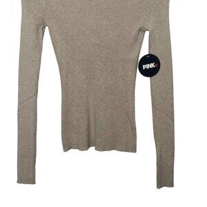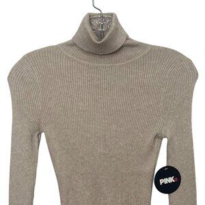 Pink Dot Ribbed Turtleneck Sweater Womens Small Beige New