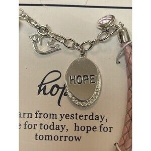 Beautiful double pink braided bracelet with oval HOPE charm, pink crystal charm and dove charm. Perfect for breast cancer awareness month. Inspirational message of hope. Adjustable to fit all sizes. Brand new in original box. Comes from a smoke free home.
