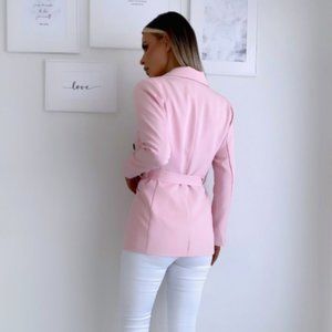 A blazer is the ultimate in style and confidence. This fitted blazer with its detachable belt & double breasted button detail is a classic & versatile piece. Style yours with coated jeggings and layer over a cami top for a weekend worthy look!
