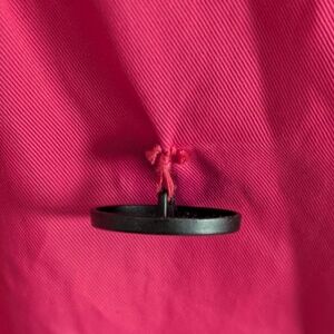 Stylish fushia double-breasted jacket with black buttons. Features a chic collar and rolled sleeves with belt detail. Color is a little duller in person than pictured. All buttons are attached but one or two are loose. Lightweight jacket. p2p measurement is 18-19in
