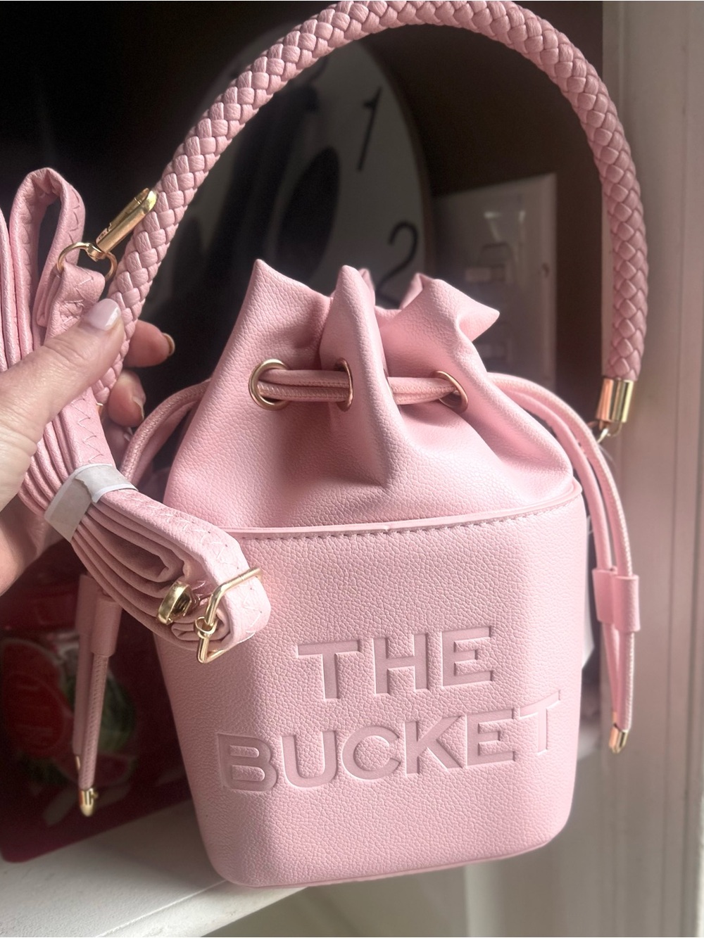 Pink Drawstring Bucket Bag, NEW