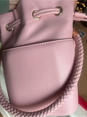 Stylish pink bucket bag with drawstring closure. Lightweight and versatile for everyday use. Pink color adds a soft, feminine touch to any outfit. Great looking bag, Faux leather, NEW