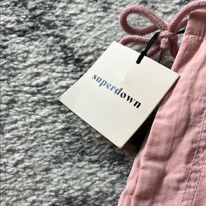 Stylish pink cargo pants with drawstring waist. Features multiple pockets for convenience.