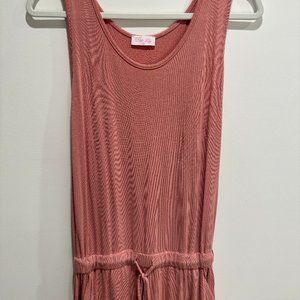 Pink Lily pink drawstring jumpsuit. It also has pockets in the front and makes for a perfect loungewear jumpsuit.