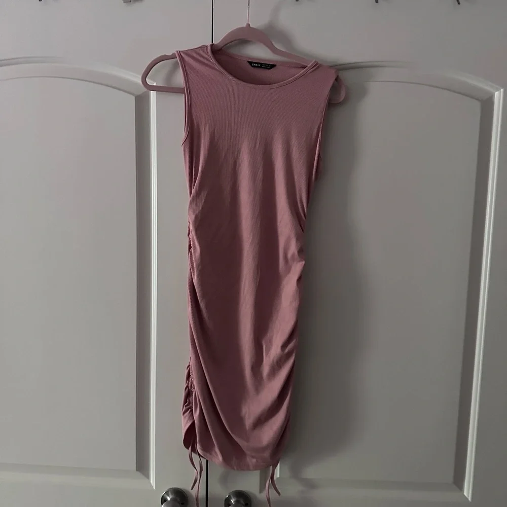 Pink Drawstring Ruched Side Bodycon Ribbed Dress