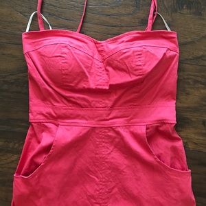 Get ready to party with this dress! It can be worn strapless or with thin spaghetti straps. The bra area is slightly padded and the seams in the chest and waist area are super flattering! Plus... It has pockets!! 24" from bust to hem. 97% cotton, It has very little stretch to it and runs small (XS, S)