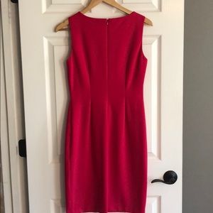 Beautiful and classy Ivanka Trump pink sheath dress. Flattering side ruching with a gold zipper accent. Slight pilling at neckline but not noticeable.