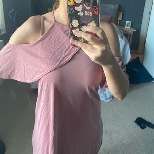 Pink dress with a cool neckline! You can wear the ruffled straps off or on, it looks good both ways! Worn only once.